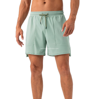 Elastik Lulu spor şort hızlı kuru streç basketbol koşu çift katmanlı iki cep Fitness pantolonları